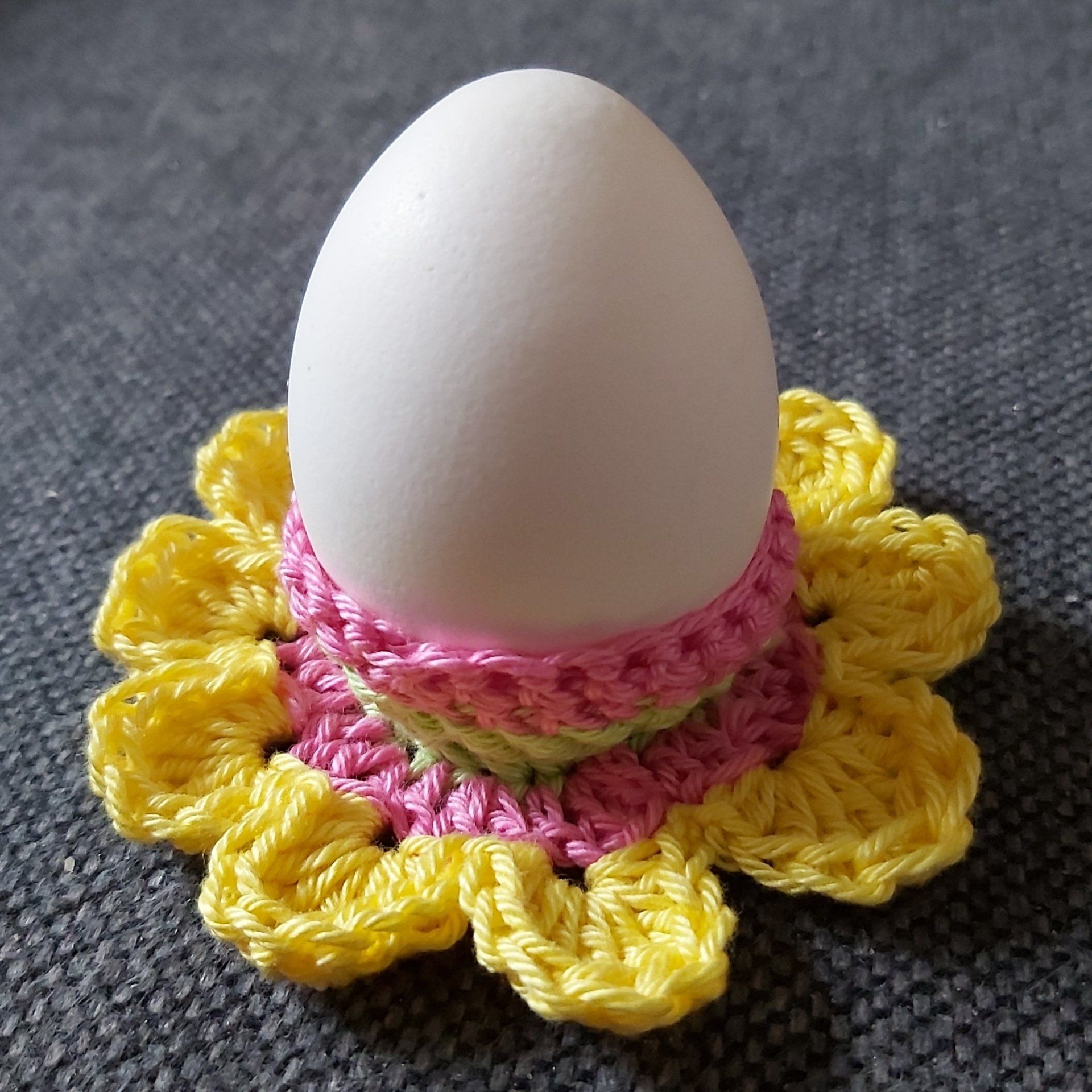 Mal kein Körbchen sondern etwas für Erwachsene. Ostern darf auch in der Küche im Alltag spürbar werden. Ein Spültuch und ein Topflappen nach dem gleichen Diagramm gehäkelt und gestrickt.